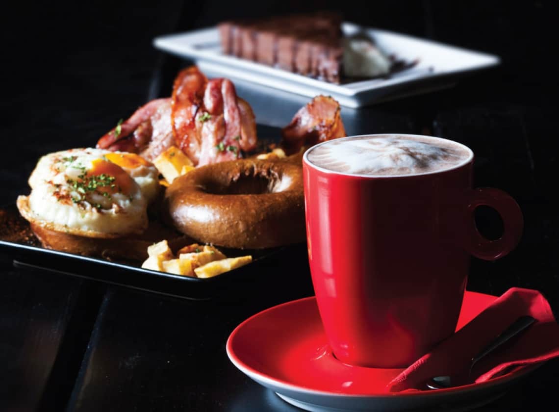 ΕΚΤΕΛΕΣΗ: Ψήνουμε το bagel ολικής άλεσης στους 1700C βαθμούς για 5 λεπτά. Κόβουμε τις πατάτες σε κύβους. Τηγανίζουμε στους 1700C βαθμούς για 4 λεπτά περίπου. Ψήνουμε το μπέικον μέχρι να ξεροψηθεί. Τηγανίζουμε τα αυγά με μία κουταλιά λάδι. Ιδανικά μετά το Breakfast Dish, μπορείτε να απολαύσετε ένα cheesecake σοκολάτα.