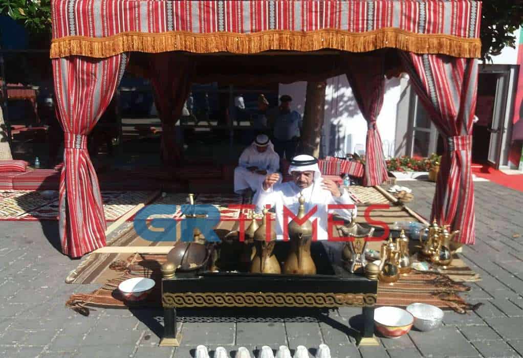 Η αραβική συμμετοχή στην 86η ΔΕΘ έχει αρκετά παραδοσιακό «χρώμα» -με σκηνές Βεδουΐνων στην είσοδο και έξοδο του Περιπτέρου 13, γεράκια και εκδηλώσεις χορού και μουσικής. Πέραν αυτών όμως, στο ίδιο περίπτερο, εκθέτες περιμένουν να σας ξeναγήσουν στον υπέροχο κόσμο του γκάουα (Gahwa), δηλαδή του αραβικού καφέ που έχει κι εκείνος την τιμητική του.