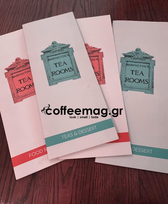 Το μενού σήμερα προσφέρει μια πλούσια ποικιλία από γλυκά και αλμυρά πιάτα, με σεβασμό στην αγγλική παράδοση, από το ελαφρύ γεύμα μέχρι το βικτοριανό τσάι. Το coffeemag.gr επισκέφθηκε το πολυφημισμένο Tea Shop και η εμπειρία ήταν μοναδική. Ένας φιλόξενος και παράλληλα διακριτικός χώρος στις αποχρώσεις του καφέ και του μπεζ, επενδεδυμένος με ξύλο και ακριβές ταπετσαρίες συνθέτουν το σκηνικό στο εσωτερικό του Babingtons. Όλες οι παρασκευές, από το κλασικό τσάι έως τα προϊντα ζαχαροπλαστείου και τα κυρίως πιάτα που προσφέρει εκπέμπουν μια βικτωριανή αύρα και σίγουρα αέρα πολυτέλειας.