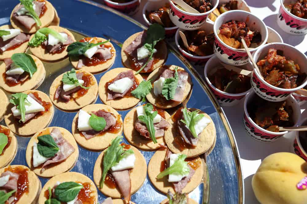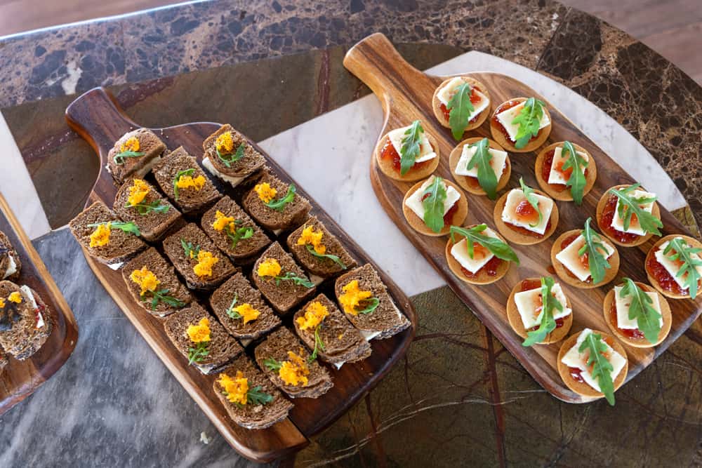 – σαντουιτσάκι με μοσχαρίσιο αλλαντικό, καπνιστό τυρί Βερμίου, σως ροδιού και φρέσκα παντζαρόφυλλα,