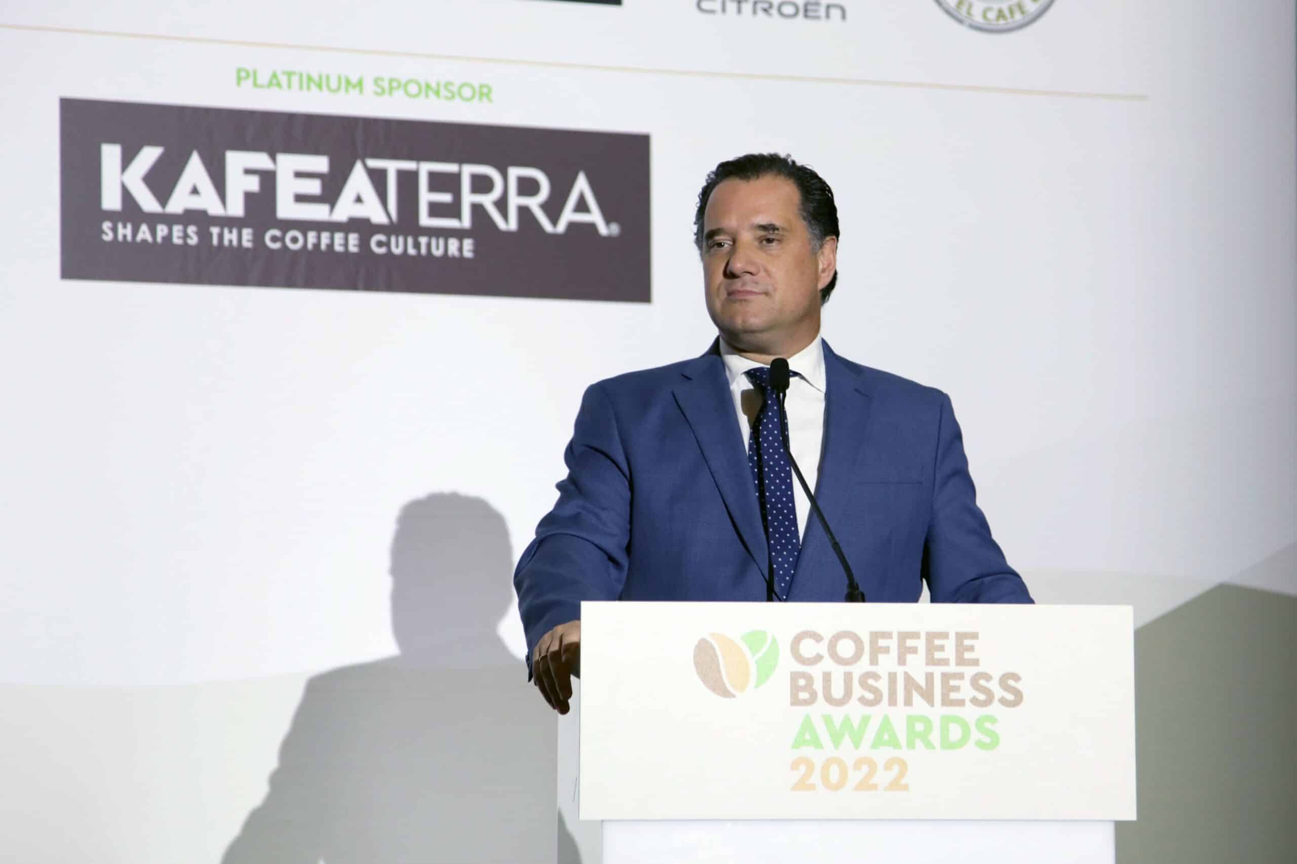 Τις τιμητικές διακρίσεις απένειμε ο κ. Άδωνις-Σπυρίδων Γεωργιάδης, υπουργός Ανάπτυξης & Επενδύσεων, ο οποίος, στον θεσμικό του χαιρετισμό, επεσήμανε: «Αυτό που δεν έχει γίνει αντιληπτό σε πολύ κόσμο είναι ότι η Ελλάδα αποτελεί μια χώρα που δεν είναι μόνο εισαγωγέας καφέ, αλλά εξάγει και τεχνογνωσία καφέ. Φτιάχνουμε κι εμείς τις δικές μας προτάσεις, κατακτώντας μεγάλες διεθνείς αγορές, γεγονός που προσδίδει προστιθέμενη αξία στη χώρα μας». Σχετικά με το φλέγον ζήτημα της κατάργησης του EΦΚ στον καφέ, ο κ. Γεωργιάδης ανέφερε ότι η διεθνής αρνητική συγκυρία έχει καθυστερήσει την κατάργησή του, ωστόσο επεσήμανε: «Ο φόρος που επιβλήθηκε ήταν λάθος, να γνωρίζετε ότι δεν παραιτούμαστε της δέσμευσής μας». Ο υπουργός ανακοίνωσε επίσης ότι υπάρχει πρόβλεψη ώστε ο κλάδος της καφεστίασης να ενταχθεί στο νέο ΕΣΠΑ. «Θα μπορείτε κι εσείς να ενταχθείτε στο νέο ΕΣΠΑ και να επωφεληθείτε από τα προγράμματα. Με ενδιαφέρει να φροντίσουμε και τον δικό σας κλάδο, στο μέτρο που μπορούμε, καθώς αναγνωρίζουμε την πολύ καλή δουλειά σας» τόνισε.