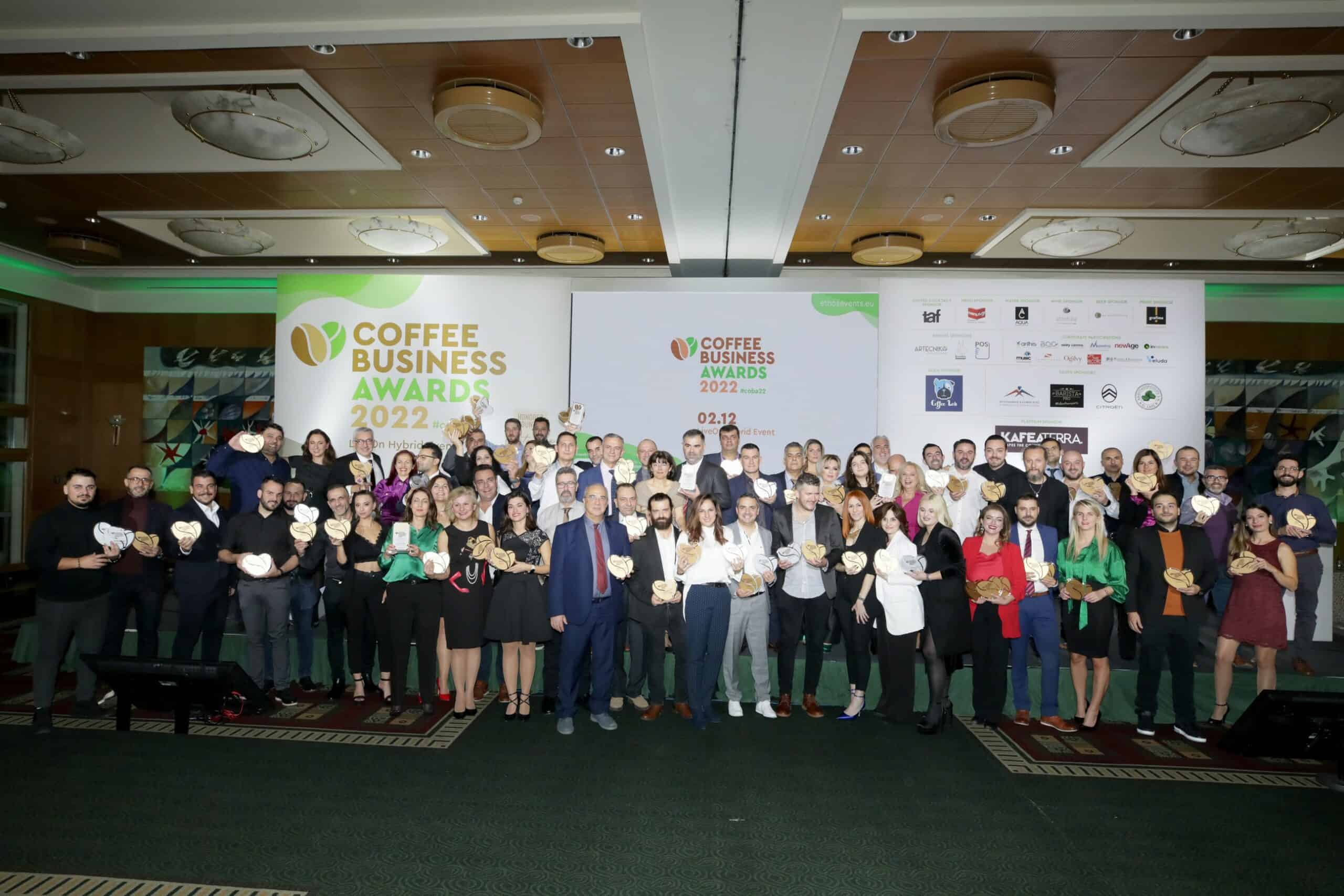 Για τέταρτη συνεχόμενη χρονιά, η ethosEVENTS διοργάνωσε τα Coffee Business Awards (#coba22) σε συνεργασία με το περιοδικό Coffee+Brunch Magazine και το portal coffeemag.gr. Η λαμπερή τελετή #coba22 πραγματοποιήθηκε την Παρασκευή 2 Δεκεμβρίου στο Divani Apollon Palace & Thalasso με φυσική παρουσία, καθώς και με παράλληλη online μετάδοση από το LiveOn Expo Complex, το καινοτόμο 3D εκθεσιακό και συνεδριακό κέντρο της LiveOn, της ψηφιακής πλατφόρμας Επιχειρηματικής Επικοινωνίας και Εκδηλώσεων.