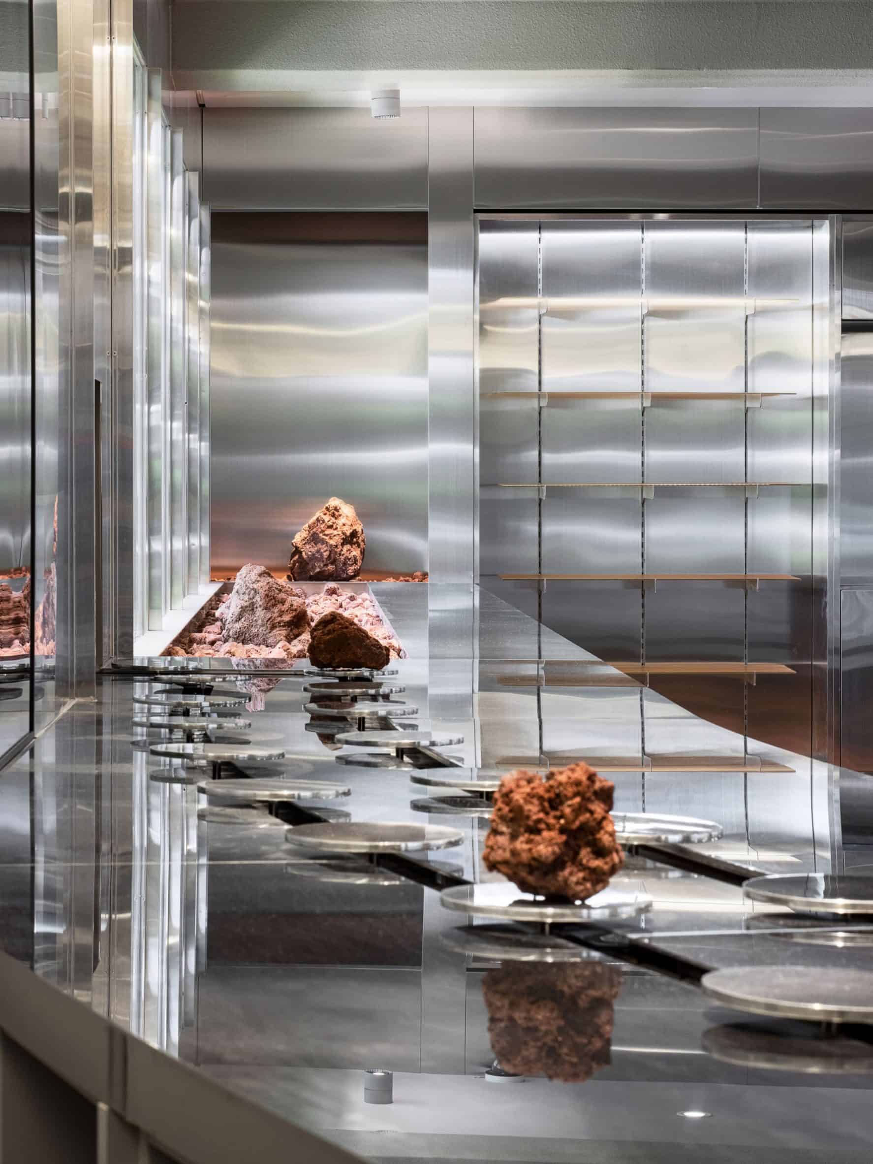 Αξίζει να σημειωθεί πως τα τρόφιμα και τα ροφήματα παραδίδονται μέσω ενός κυλυόμενου ιμάντα που “τρέχει” κατά μήκος του καταστήματος. Το ίδιο το φαγητό παρουσιάζεται σε κυκλικές πλάκες που περιστρέφονται, παραπέμποντας σε πλανήτη που βρίσκεται σε τροχιά.