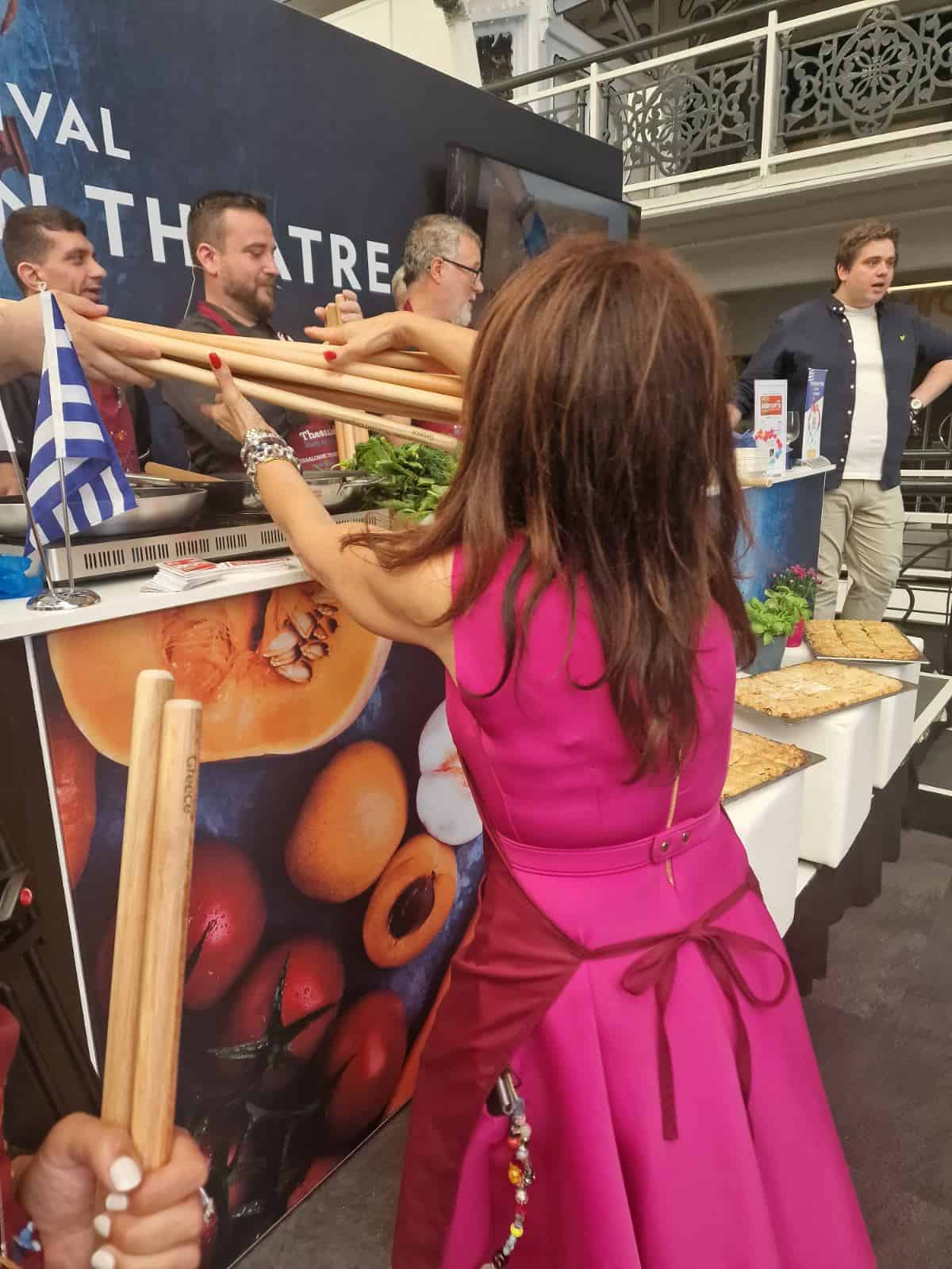 Πρωί Σαββάτου και ο κόσμος αρχίζει να συγκεντρώνεται σιγά σιγά κάτω από τον γυάλινο θόλο του Business Design Centre, ενός διατηρητέου κτιρίου στην περιοχή Islington του Λονδίνου που άνοιξε το 1862 για να φιλοξενεί αγροτικές εκθέσεις. Στον ίδιο χώρο, που σήμερα λειτουργεί ως Κέντρο Επιχειρηματικού Σχεδιασμού, οι σεφ από τη Θεσσαλονίκη ετοιμάζουν το αλεύρι από σκληρό σιτάρι, πλένουν τα μυρώνια, τις τσουκνίδες και τα λάπατα και βάζουν τηγάνι στη φωτιά για να τσιγαρίσουν φρέσκο κρεμμυδάκι. Στη συνέχεια ανοίγουν φύλλο, τρίβουν την φέτα και ετοιμάζουν την περίφημη χορτόπιτα, (hortopita) σήμα κατατεθέν της φετινής παρουσίας του Οργανισμού Τουρισμού Θεσσαλονίκης στο Food Festival του περιοδικού National Geographic Traveler. Μια ώρα αργότερα οι πύλες ανοίγουν για το κοινό που αρχίζει να πλησιάζει και να δοκιμάζει γεύσεις από την Ελλάδα και ολόκληρο τον κόσμο.