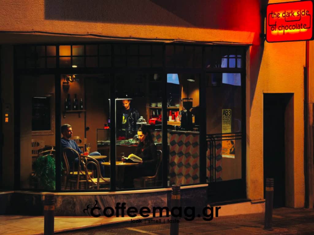Με την είσοδό μας σε αυτό το ισόγειο μαγαζί της πολυκατοικίας του ’30, νιώθουμε αυτομάτως συμπρωταγωνιστής της Juliette Βinoche στην ταινία Chocolat. Κινηματογραφικά ατμοσφαιρικό, ρομαντικό και με αρτίστικη ταυτότητα, το Dark Side of Chocolate ρίχνει φως στο ταξίδι μας στη σοκολάτα! Και αυτό γιατί διαθέτει όλα τα φόντα για να μας καθοδηγήσει μοναδικά σε αυτήν μας την εξερεύνηση. Στο τιμόνι του ο βιρτουόζος και με παριζιάνικη εκπαίδευση chocolatier Αριστοτέλης Παναγιώταρος, που, με τη βαθιά γνώση του, διαχειρίζεται αριστοτεχνικά την κορυφαία σοκολάτα Valrhona. Μεταξύ άλλων, ευχάριστη έκπληξη αποτελεί και το γεγονός ότι χρησιμοποιεί μια ειδική σπάνια ποικιλία της σοκολάτας που έρχεται από μια μικρή φυτεία στο Περού. Μια μαύρη γλυκιά σοκολάτα Βενεζουέλας ή μια κλασική πικρή σοκολάτα Καραϊβικής, με βιολογικό πάντα γάλα, μας κάνουν να καταλάβουμε ότι δεν μιλάμε με υπερβολές. Για έξτρα σοκολατένιες δόσεις δεν ξεχνάμε φεύγοντας να προμηθευτούμε τις πλάκες σοκολάτας με κόκκους αλατιού ή καρπούς κακάο. Για δώρο παίρνουμε τα επικά χειροποίητα σοκολατάκια σε κασετίνα, στολισμένα με περίτεχνα σχέδια εμπνευσμένα από τα 70s.