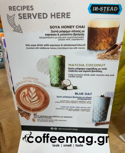 Όπως ο ίδιος ανέφερε, βρέθηκε από το Μιλάνο όπου διαμένει στην Αθήνα προκειμένου να γίνει ενεργό μέλος της έκθεσης. Οn camera μας δείχνει βήμα-βήμα την παρασκευή ενός κρύου ροφήματος με το “INSTEAD OF MILK”, ένα προϊόν-υποκατάστατο γάλακτος, σιρόπι βανίλιας και τσάι μάτσα. Είναι “γρήγορο, ξεδιψαστικό, ελαφρύ, κατάλληλο για όσους έχουν δυσανεξία στο γάλα” σύμφωνα με τον Gianni Cocco.