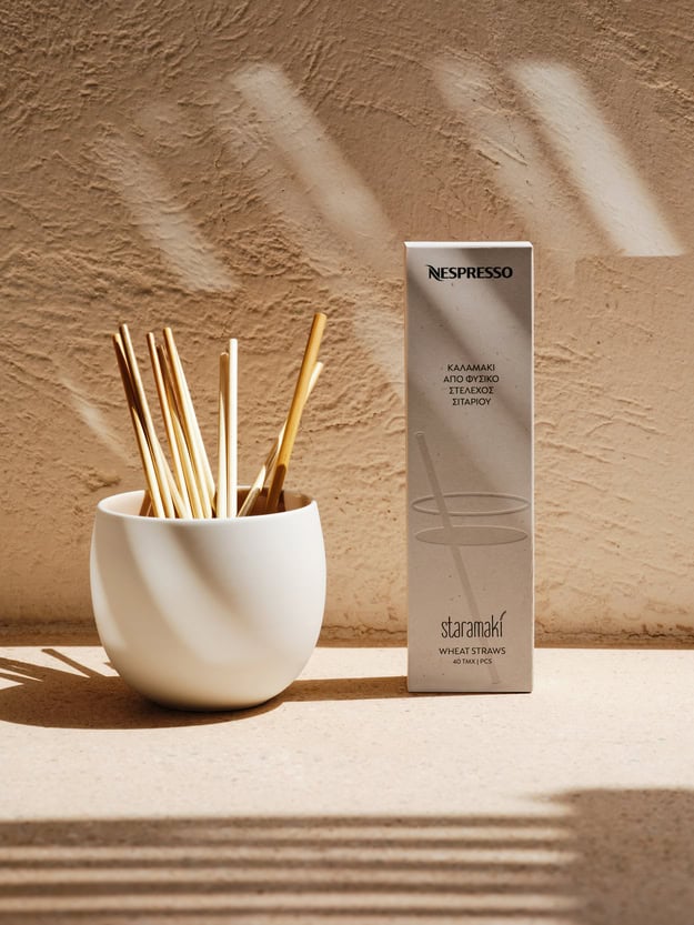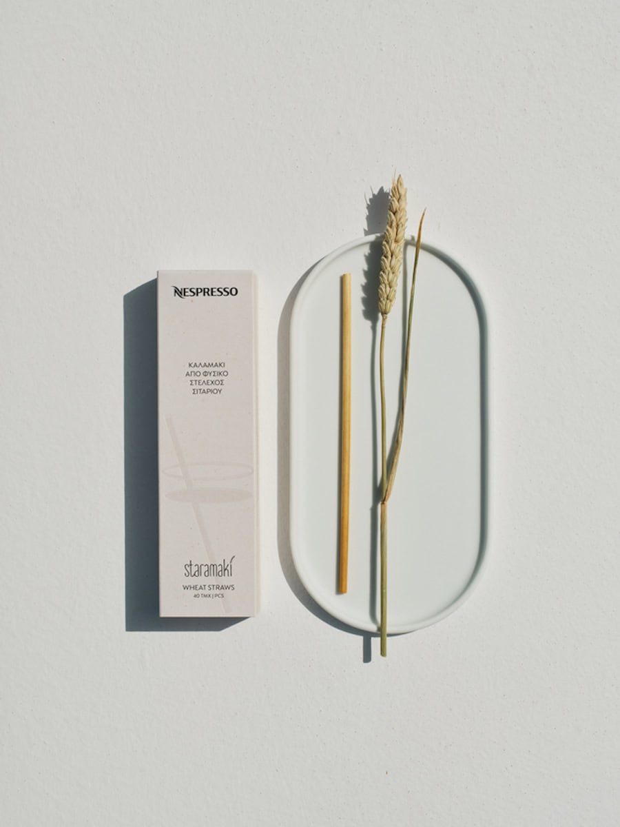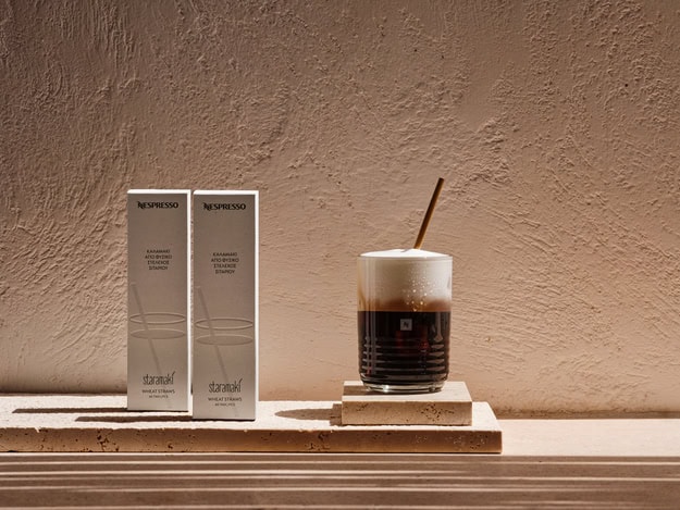 Freddo με καλαμάκι σιταριού. Η Nespresso εντάσσει στις Boutiques και στο e-shop της το Staramaki, το πρώτο ελληνικό καλαμάκι φτιαγμένο από φυσικό στέλεχος σιταριού.