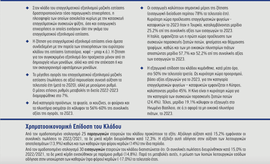 Μεταξύ άλλων, η εταιρεία παρουσιάζει στατιστικά και δεδομένα για τον κλάδου Εξοπλισμού Μαζικής Εστίασης. Σύμφωνα με την ICAP GRIF, με βάση το σύνολο του ενεργητικού τους, στις 3 πρώτες θέσεις είναι η CARRIER FRIGEL ΑΠΟΣΤΟΛΟΥ ΜΟΝΟΠΡΟΣΩΠΗ Α.Ε., η ΚΩΣΤΟΠΟΥΛΟΥ Π., ΥΙΟΙ Α.Ε.Β.Ε. και η EUROGAT A.E.