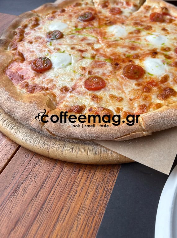 Eμείς απολαύσαμε καφέ freddo της Hausbrandt, pizza margarita, ομελέτα καγιανά και μία πορτοκαλόπιτα με παγωτό.