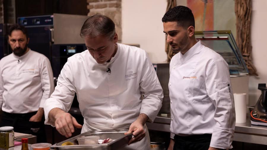 Κατά την πρώτη ημέρα, υπό την καθοδήγηση του γάλλου chef, οι συμμετέχοντες είχαν την ευκαιρία να εξερευνήσουν σε βάθος τη φιλοσοφία και τις τεχνικές της Pescetarian Κουζίνας, συνδυάζοντας τη γευστική αρμονία με τη βιωσιμότητα και τη σύγχρονη γαστρονομική καινοτομία.