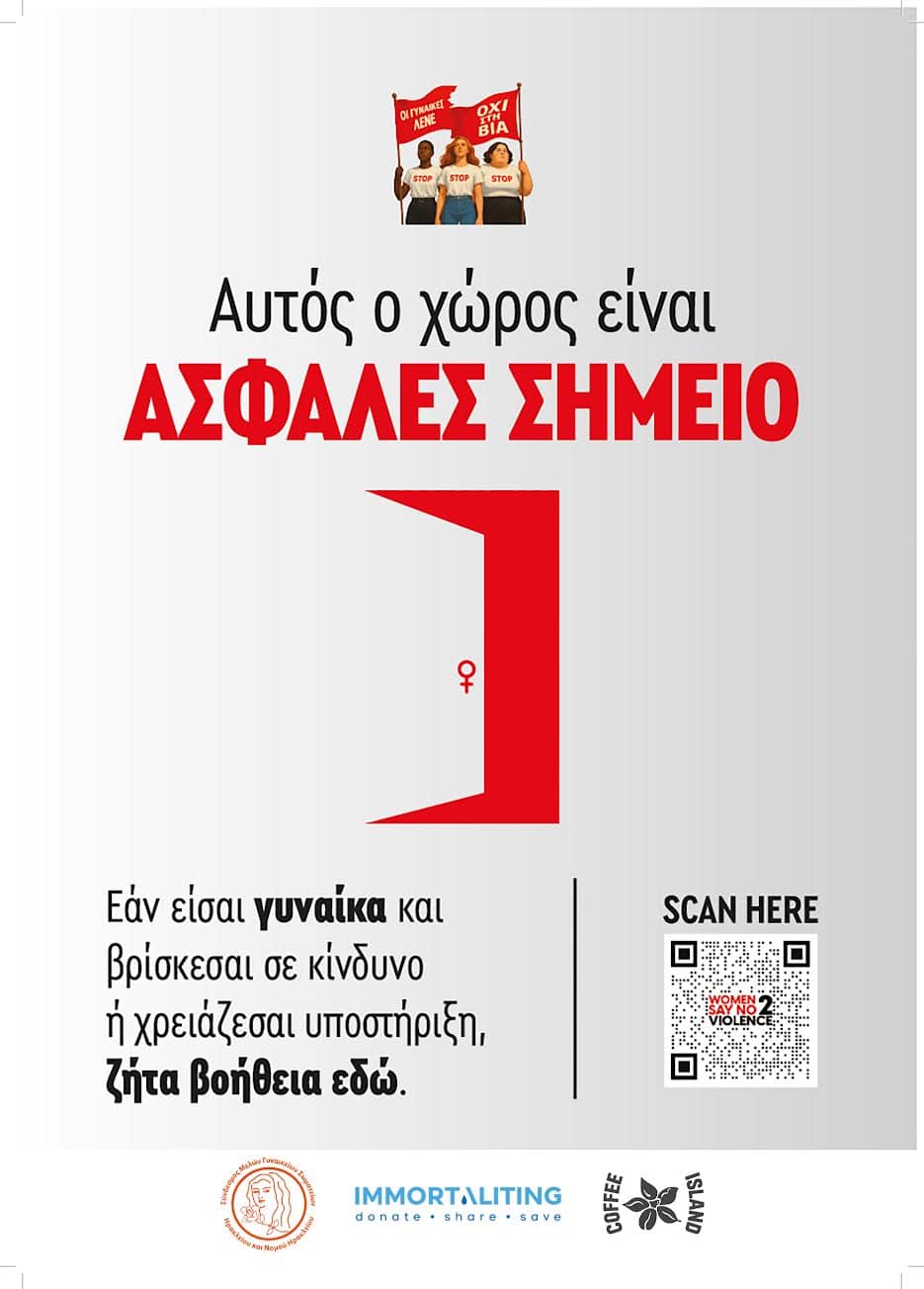 Με αφορμή την Παγκόσμια Ημέρα για την Εξάλειψη της Βίας κατά των Γυναικών, η Coffee Island ενώνει τη φωνή της με την ΑΜΚΕ Immortaliting και τον Σύνδεσμο Μελών Γυναικείων Σωματείων Ηρακλείου & Ν. Ηρακλείου, για να στείλει ένα ξεκάθαρο μήνυμα: Καμία γυναίκα δεν είναι μόνη. Καμία μορφή βίας δεν είναι αποδεκτή.