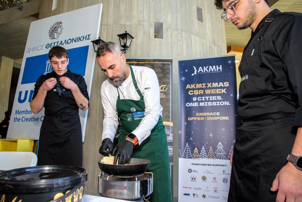• Στη Θεσσαλονίκη, οι μελλοντικοί chefs της ΑΚΜΗΣ, μαζί με τους καθηγητές τους, πρόσφεραν ζεστασιά και γεύση μέσα από ένα live cooking event στο Δημαρχείο.