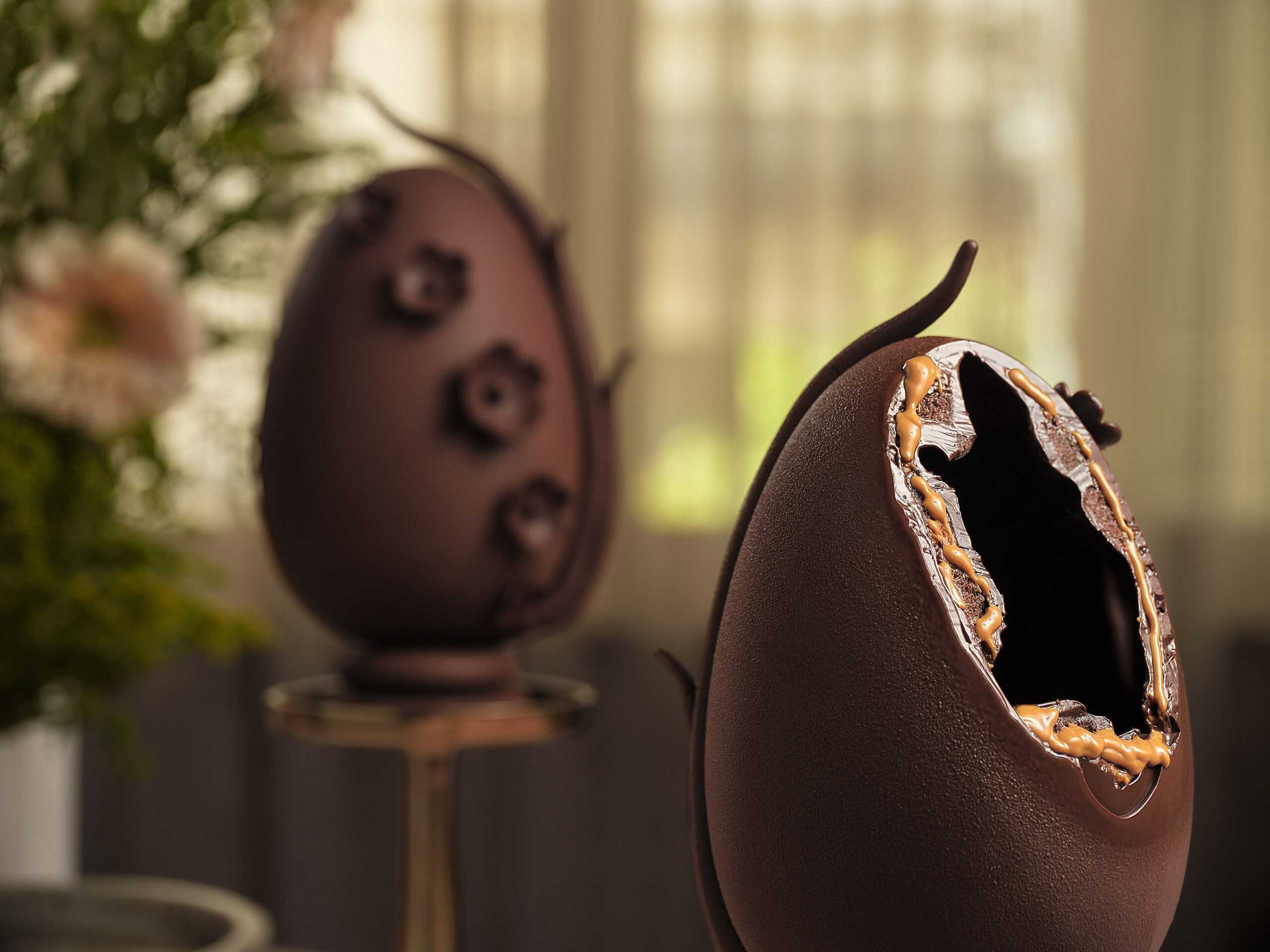 Οι απολαυστικές δημιουργίες με bitter σοκολάτα ξεχωρίζουν για τους έντονους γευστικούς συνδυασμούς και τις πλούσιες υφές τους, με σπιτικό φυστικοβούτυρο και ζουμερά κομμάτια brownie, αλλά και με σπιτική πραλίνα από φιστίκι Αιγίνης και τραγανά καραμελωμένα φιστίκια. Για εκείνους που προτιμούν μια πιο απαλή και διαχρονική γεύση, η πασχαλινή συλλογή συμπληρώνεται από ένα κλασικό σοκολατένιο αυγό με βελούδινη σοκολάτα γάλακτος.