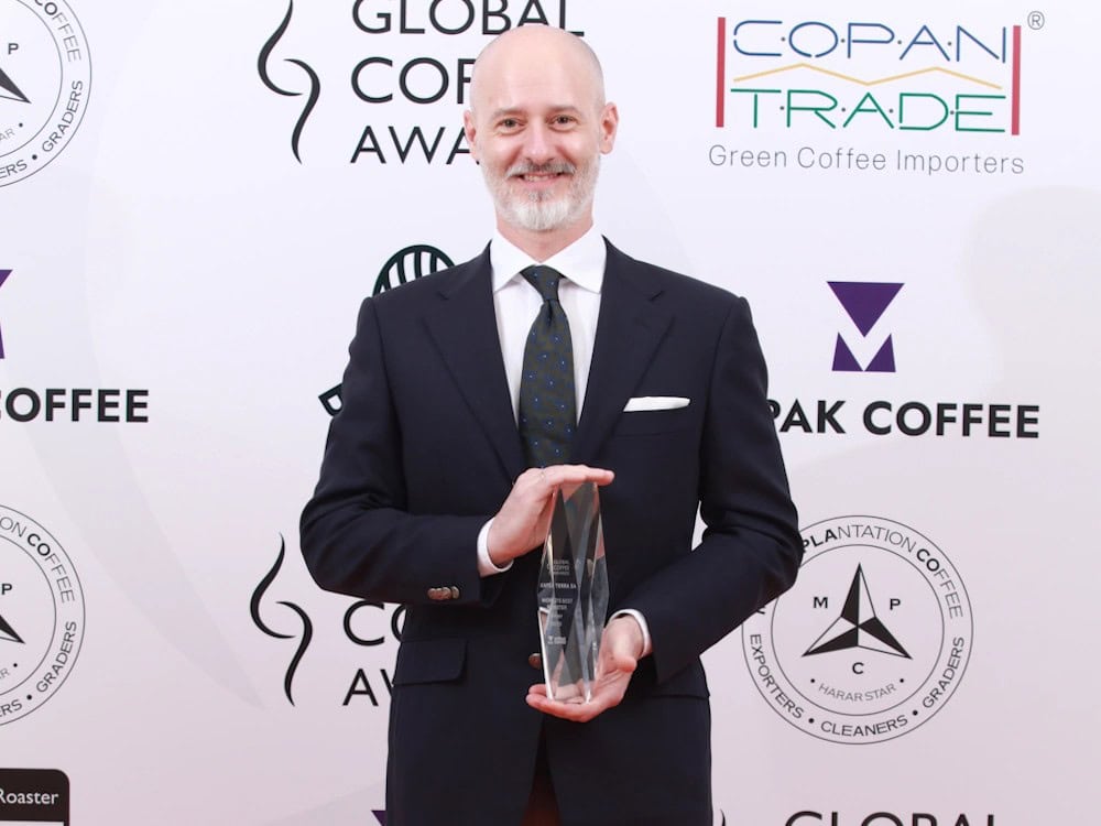 O Freddy Pastras-Mayer, Διευθυντής του Τμήματος Specialty Coffee της Kafea Terra, με το Silver Award ανά χείρας